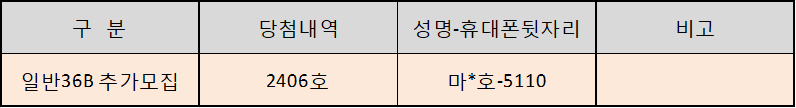 ● 일반36B형에 대한 당첨자는 아래 표와 같습니다.